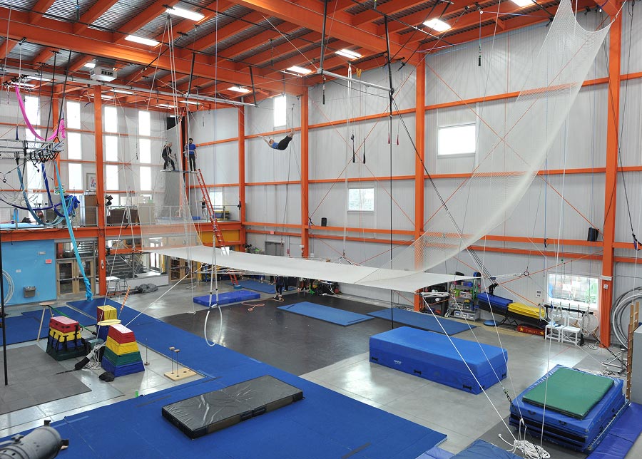 Our custom-built facility includes an in-ground foam pit, trampoline, 40′ and 24′ rigging points, and air conditioning. Make circus the focus you want it to be while enjoying beautiful Vermont.