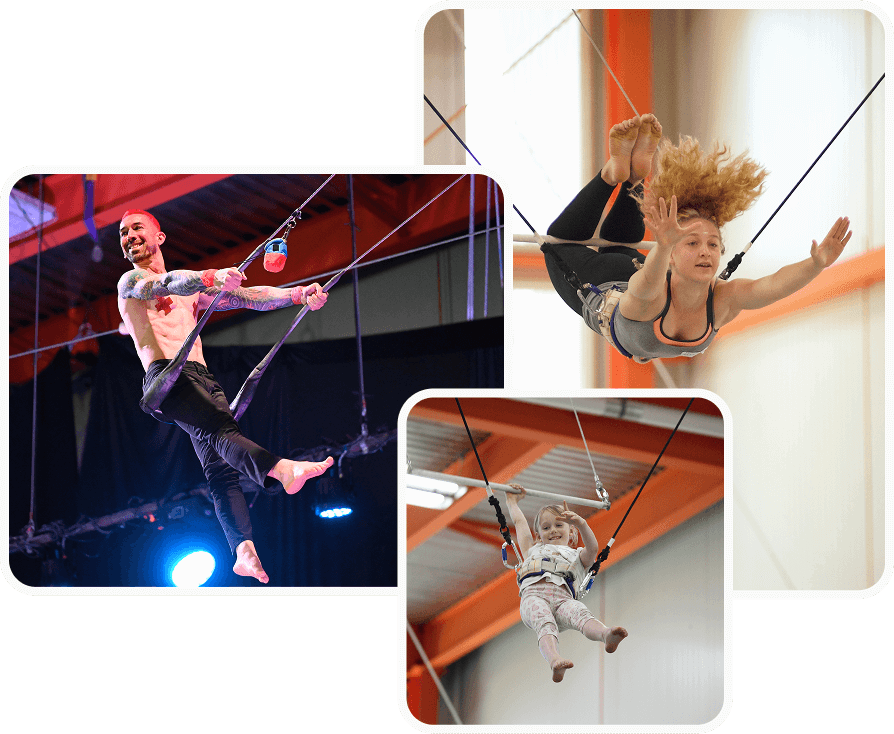 - Students may also be asked to demonstrate body positions on the ground before being permitted to do so in the air. Such as knee hang on a static bar before going upside down on the Flying Trapeze