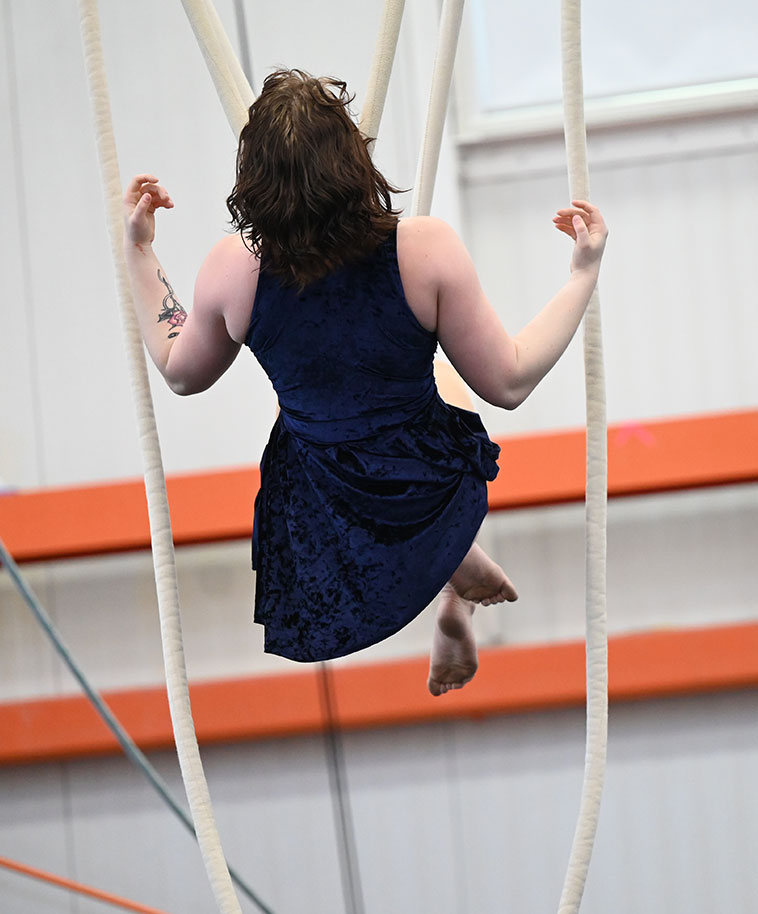 This workshop is designed for individuals with previous aerial experience at an intermediate level. Students should be comfortable with a pullover, hanging from knees, and be familiar with a double-leg crochet. Please wear clothing that covers the backs of your knees and bring layers.