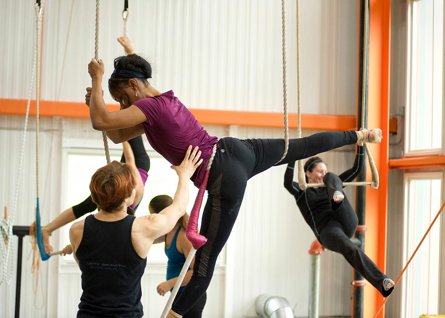 A bar hanging from two ropes, but 20 feet in the air (don’t worry… there’s a net)! Drop in for some thrilling flying trapeze classes for all ages and abilities!